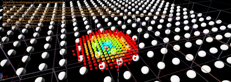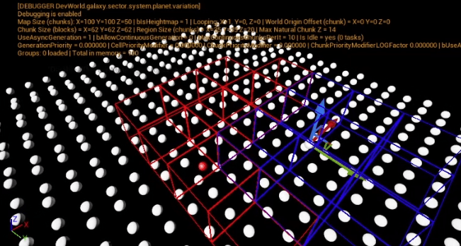My current replication group size is 10x10x10 chunks, but I will probably adjust this when I have more data to test with (big white spheres scattered on the map isn’t a good example!).