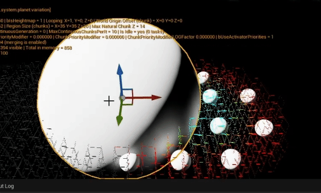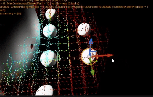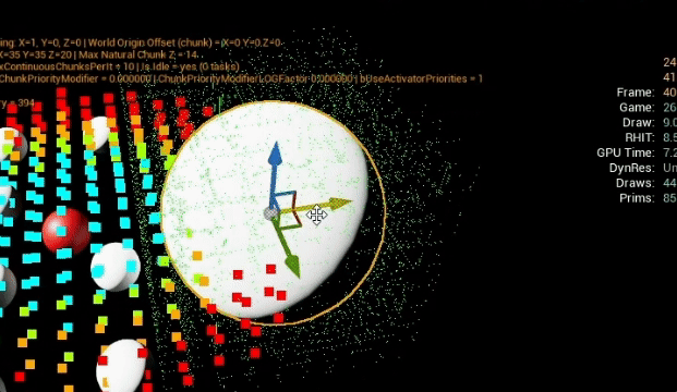 In the above, the green mush of pixels around the big sphere is actually all the chunks the actors is overlapping with. Now, compared to the previous animation, the actor only gets hidden when none of the overlapping chunks are in range anymore.